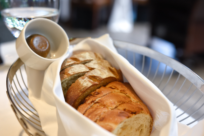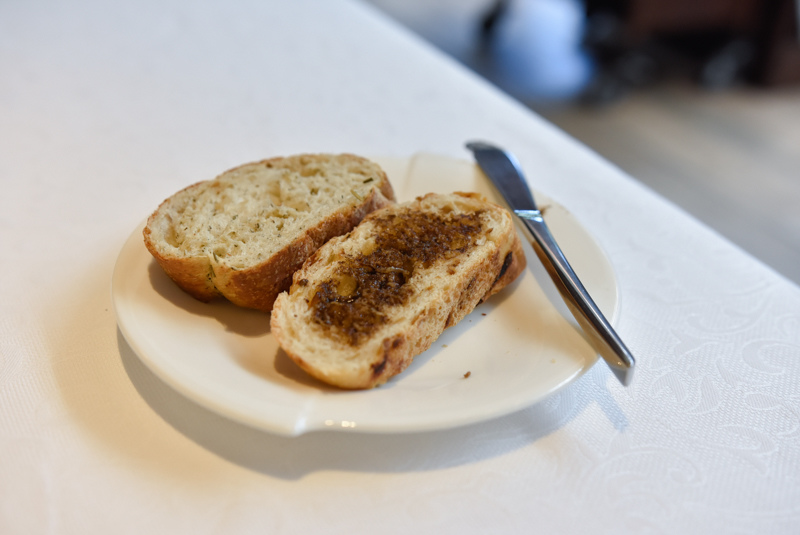 首先送上的麵包有迷迭香與洋蔥兩種,烤得熱騰騰的麵包蓬鬆帶點嚼勁,抹上黑蒜奶油好吃到讓我們直接消滅整籃,雖然可以免費續添但還是要把胃留給牛排呀。
