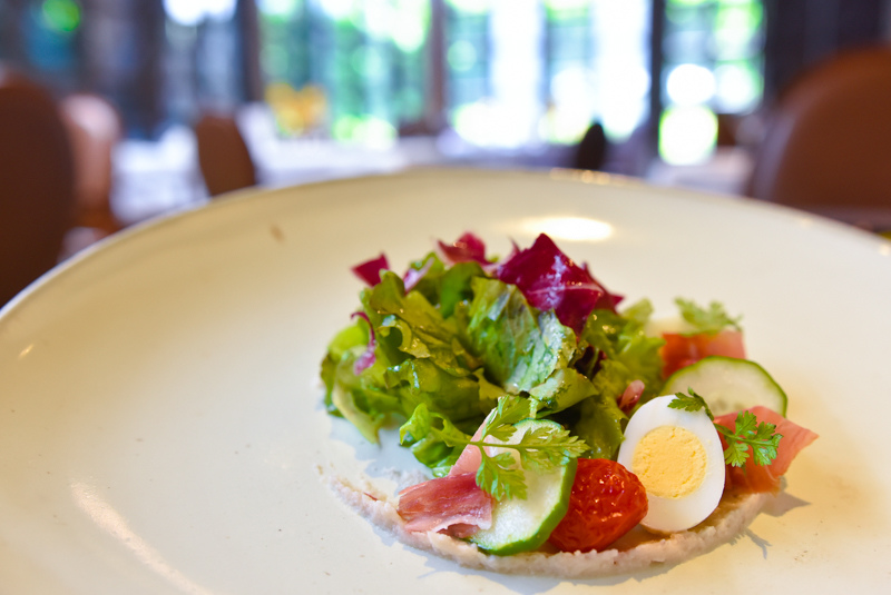 沙拉看似普通,卻因清爽微酸醬汁和清爽微酸的芋泥搭配而有新意。